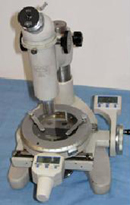 產(chǎn)品詳細(xì)介紹一、 用途: 15JE數(shù)顯型測量顯微鏡是光學(xué)計(jì)量儀器之一種,其測量工作臺(tái)可沿X、Y向移動(dòng),并繞垂軸旋轉(zhuǎn),X、Y向的移動(dòng)的距離可從數(shù)顯讀數(shù)裝置上讀取,旋轉(zhuǎn)角度通過度盤和游標(biāo)讀取,儀器結(jié)構(gòu)簡單,操作方便,適用范圍極廣,主要用途如下: 1、 直角座標(biāo)中測定長度,例如測定孔距、基面距離、刻線寬度、鍵槽寬度、狹縫寬度、通孔外圓直徑等。 2、 轉(zhuǎn)動(dòng)度盤測定角度,例如對(duì)刻度盤、樣板、量規(guī)、鉆孔模板及幾何形狀復(fù)雜的零件進(jìn)行角度測量。 3、 用著觀察顯微鏡,以比較法檢查工作表面光潔度,鑒定冶金工業(yè)的礦石標(biāo)本、檢定印刷照相制版,檢查紡織纖維等等。 二、 規(guī)格: 物 鏡 目 鏡(毫米) 顯微鏡 放大 倍數(shù) 工作 距離 (毫米) 視場 直徑 (毫米) 放大倍數(shù)/ 數(shù)值孔徑 焦距(毫米) 放大倍數(shù) 焦 距 (毫米) 2.5X/0.08 43.40 10X 25.00 25X 58.84 5.6 10X/0.25 17.13 100X 7.81 1.4 測量工作臺(tái)讀數(shù)裝置主要規(guī)格 1. 測量范圍 6、 分劃板 (1) 工作臺(tái)測量范圍X向 50毫米 Y向 13毫米 (2) 圓工作臺(tái)角度測量范圍 0°-360° 1、目鏡 2. 分度值 (1) 工作臺(tái)數(shù)顯讀數(shù)裝置分度值 0.001毫米 (2) 圓工作臺(tái)分度值 1° 2、棱鏡 (3) 圓工作臺(tái)游標(biāo)分度值 6’ 3. 儀器測量準(zhǔn)確度 ±(5+L/15)微米 4. 測量地點(diǎn)溫度變化(20±3)℃ 三、儀器主要尺寸: 1. 測量工作臺(tái)玻璃臺(tái)面與物鏡間的最大距離 80毫米 3、物鏡 2. 測量工作臺(tái)直徑 120毫米 3. 儀器外形尺寸(長x 寬 x 高) 284x263.5x332毫米 四、儀器重量:11千克 4、工作臺(tái) 顯微鏡的目鏡管同棱鏡成為一體繞垂軸旋轉(zhuǎn), 顯微鏡可由調(diào)焦手輪進(jìn)行上下調(diào)焦。 5、照明器