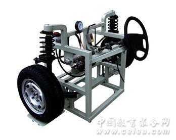 輪胎、鋼圈、減振器、方向機、動力泵及油管、壓力表、前獨立懸掛方向盤彩用三相電機驅動,助向泵工作車身重量模擬調節移動鋼臺架(噴塑)。