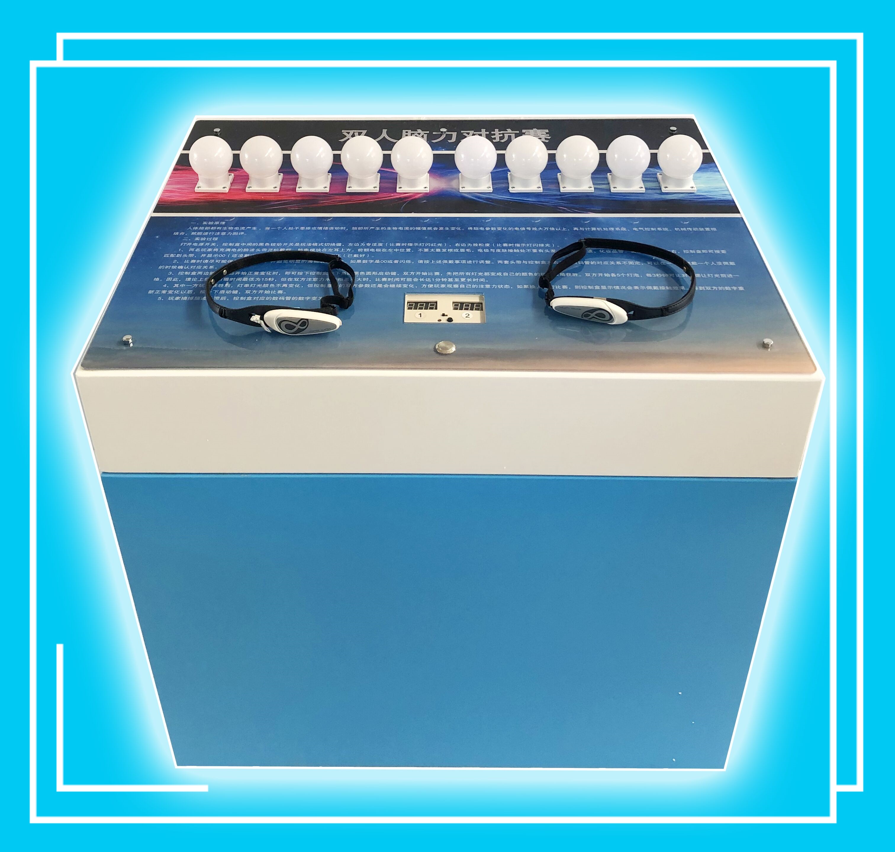 人體腦部都有生物電流產(chǎn)生,當(dāng)一個人處于思維或情緒活動時,腦部所產(chǎn)生的生物電流的幅值就會發(fā)生變化。將參賽者雙方的腦電參數(shù)變化的電信號放大萬倍以上,就能實現(xiàn)用腦電波進行推球比賽。