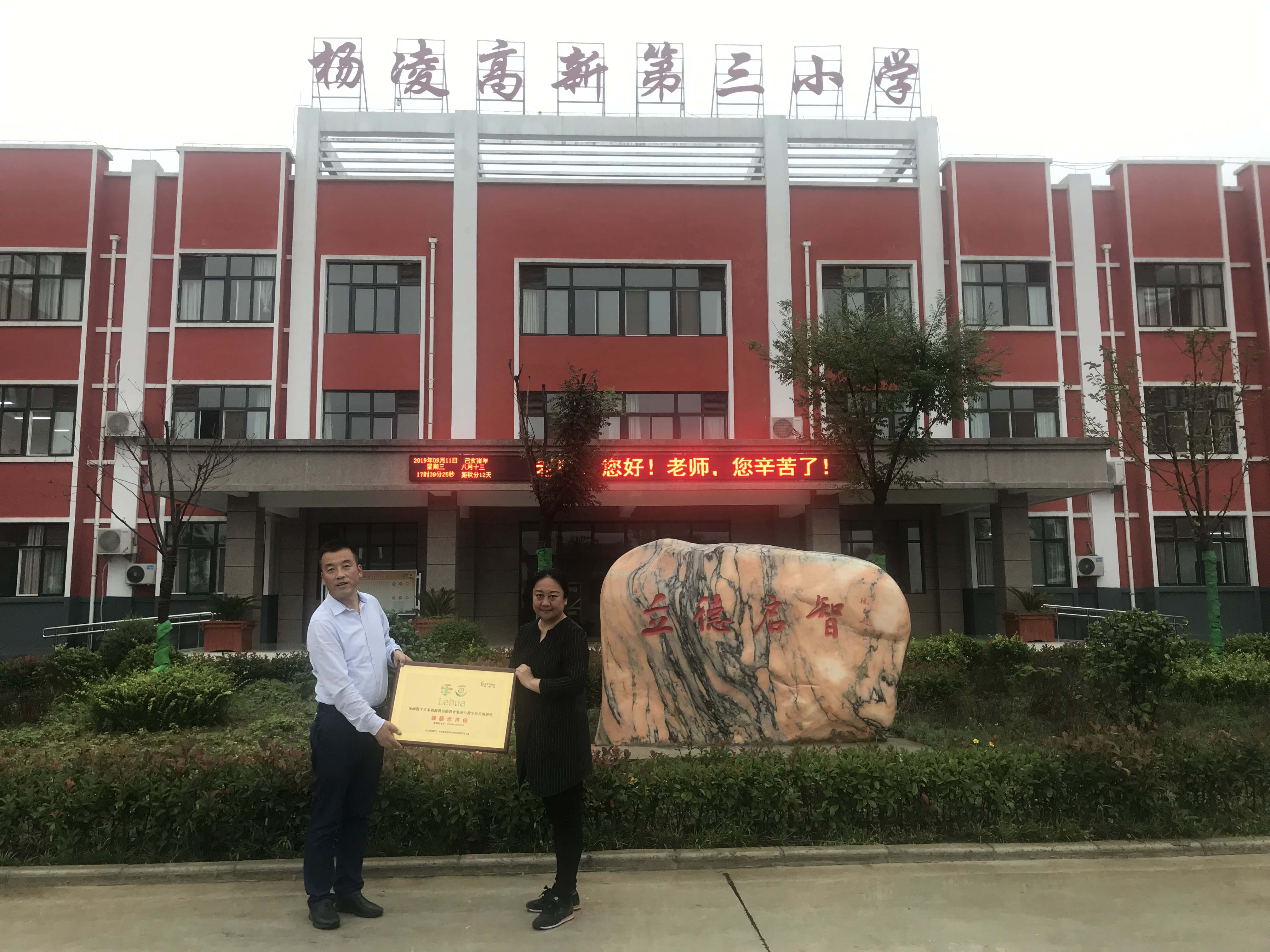 康智達公司總經理貢慶慶向楊凌高新第三小學校長強廣林頒發樂畫課題示范校授牌