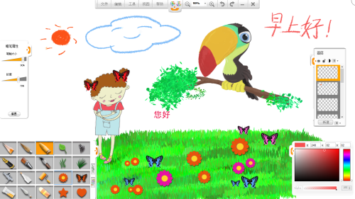 在樂畫繪畫軟件中,更多筆觸工具和特效工具以及素材庫等