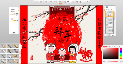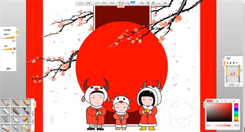 在這里,使用樂(lè)畫繪畫軟件創(chuàng)作一幅春節(jié)賀圖,給大家拜年
