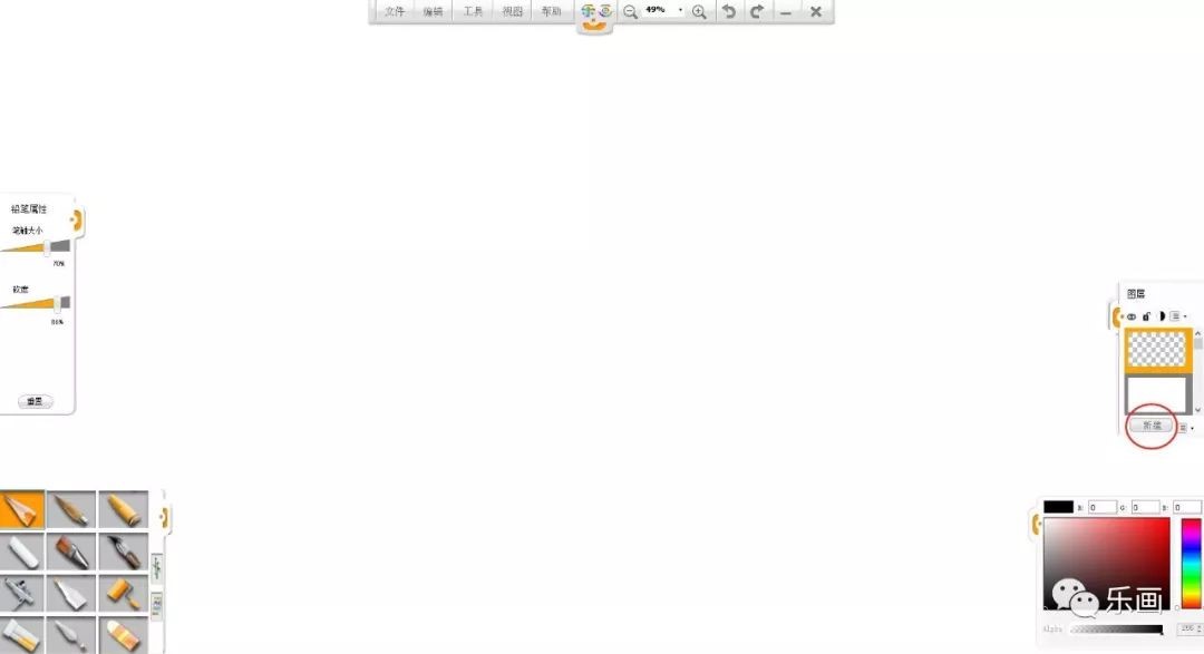 在右側圖層面板,點擊“新建”按鈕,會再新增一個透明圖層,開始創作。
