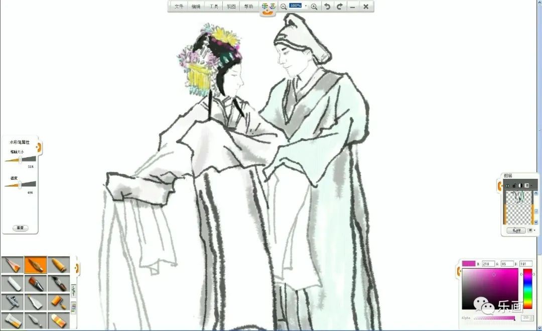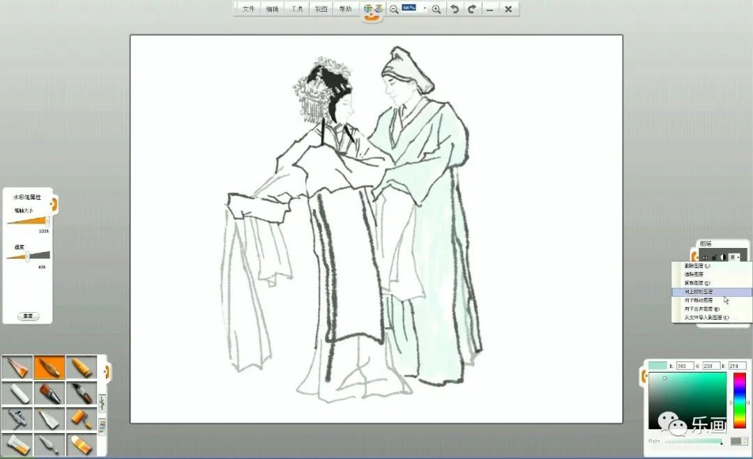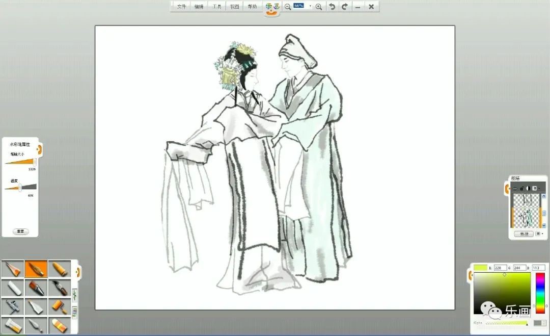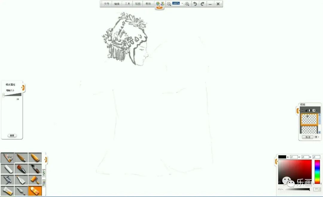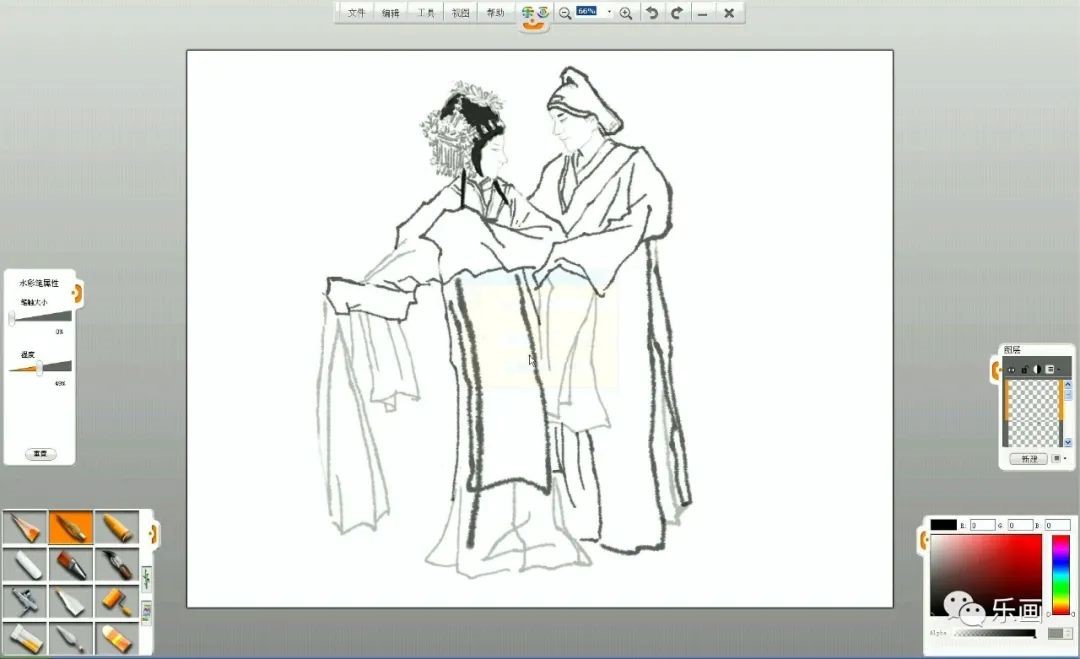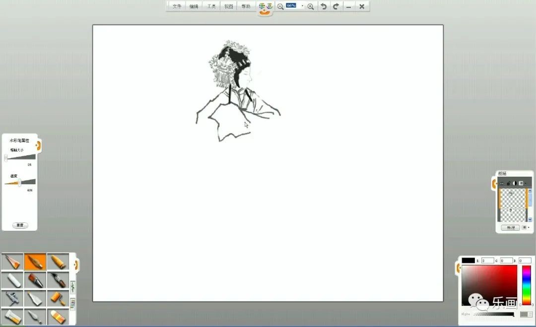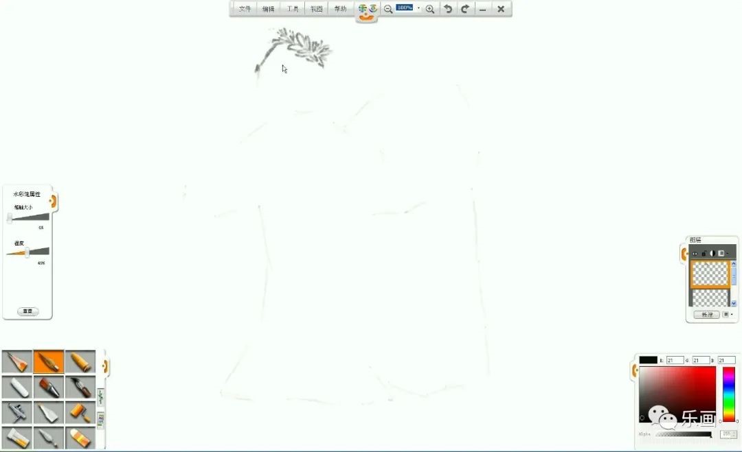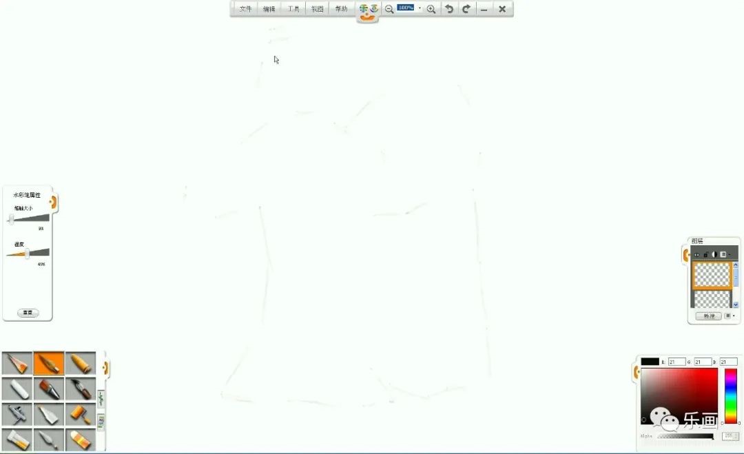 1、熟練掌握樂畫軟件中水彩筆和毛筆、鉛筆的基本用法。