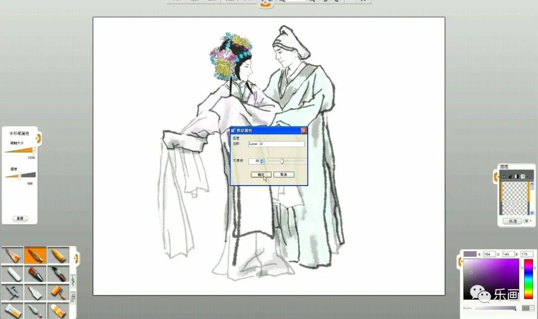 創(chuàng)作過程中,如何運(yùn)用工具及調(diào)節(jié)圖層透明度和畫筆大小。