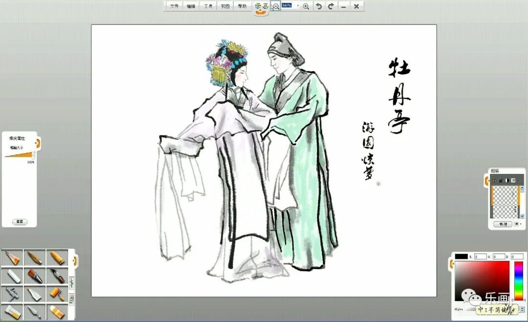 國(guó)畫人物《牡丹亭》游園驚夢(mèng)