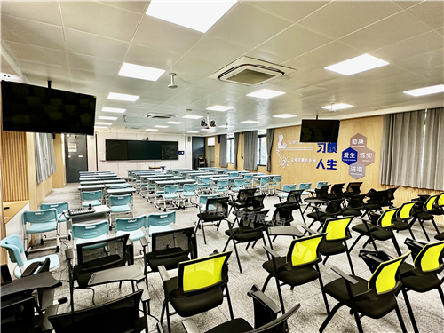 多功能報告廳,是一個集學術、交流、文藝于一體的多功能場所,兼具會議室、演講、文藝演出等多重功能,整體設計簡約大氣,符合高標準、現代化、信息化的要求。
