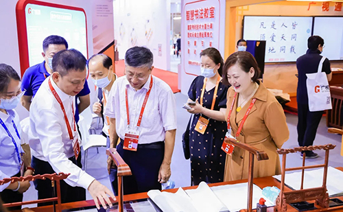 展會現場,廣視通以信息技術賦能智慧教育裝備,打造了“3+1”的產品模式,推出“智慧書法教學全系列產品”、“中考實驗教學與操作考評系統”、“創新智慧實驗室”等一系列智慧教育裝備產品,引現場嘉賓和領導紛紛駐足體驗,受到了一致好評。