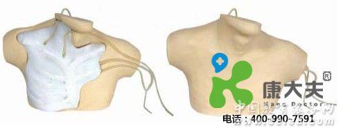 ■ 解剖結構精確,與真人一般大小,有明顯的體表標志,包括:胸骨上切跡、胸鎖乳突肌、鎖骨、右側肋骨。 ■ 逼真的血管結構,主要包括:頸內靜脈及鎖骨下靜脈等。 ■ 中心靜脈穿刺插管:鎖骨下靜脈穿刺,頸內靜脈穿刺。 ■ 可進行心臟漂浮(Swan-Ganz)導管的插管練習。 ■ 皮膚和靜脈可更換,進針有明顯的落空感。 |