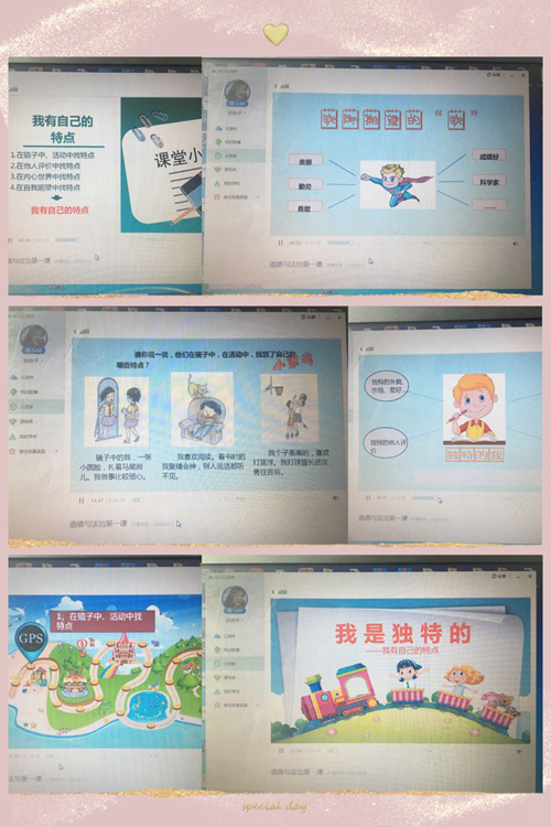 為了線上教學(xué)的新模式,負(fù)責(zé)《道德法制》的周老師和田老師,從頭開(kāi)始研讀教材,梳理教案,制作課件,一次次的試講后才有正式線上教學(xué)時(shí)的自信與揮灑自如。