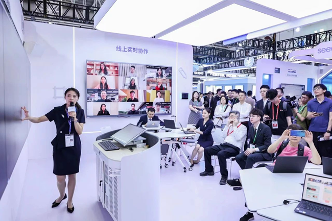 期間,教育數字化領域頭部企業希沃帶來搭載教學大模型的希沃第七代交互智能平板、希沃一體式教學終端N24、希沃品課2.0等硬件和軟件新品;同時展示了“五場景一平臺”高校解決方案,展示人工智能與數字化技術相結合,創新高等教育的教學新場景。