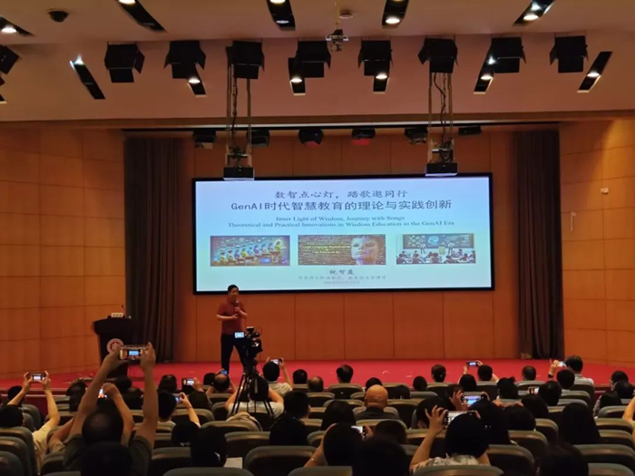 華東師范大學終身教授、教育技術學博士生導師祝智庭圍繞“GenAl時代智慧教育的理論與實踐創新”作主旨報告,他表示,智慧教育是通過人機協同作用以創變教學過程與促進學習者美好發展的未來教育范式。教育智慧是智慧教育的基石,它通過數據智慧提供精準的學習分析、通過教學智慧優化教學方法,通過文化智慧塑造教育價值觀。