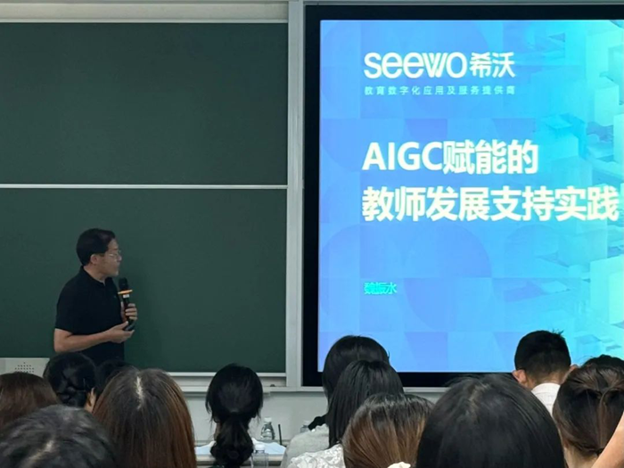 希沃受邀參加“AI賦能教師專業發展”分論壇,希沃副總裁魏振水以《AIGC賦能的教師發展支持實踐》為題,分享希沃新的創新應用實踐。