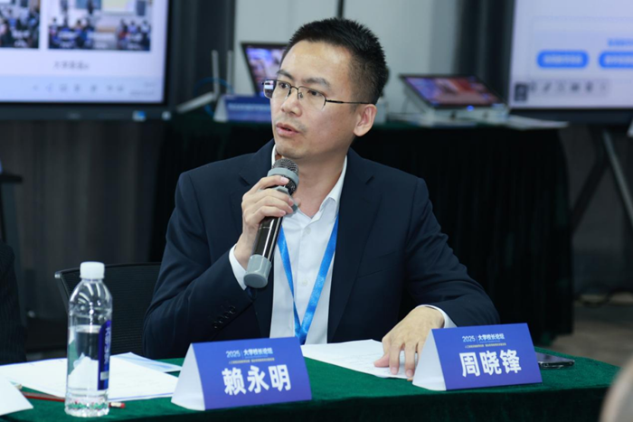 希沃廣西子公司總經理彭煜川介紹了落地廣西的高校實踐案例。他以南寧師范大學為例,雙方共同成立人工智能學院,合作圍繞智能教學工具研發、師范生能力培養、教學質量評估支持升級開展。此次合作是高校與企業協同推進“人工智能+教育”落地的重要實踐,旨在通過產學研深度融合,共同培養適應智能時代的教育人才,探索教育教學質量提升的新路徑。