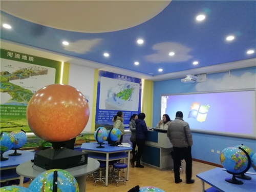 靖遠二中數字化地理專用教室配備了中教啟星數字星球系統、交互地圖教學系統、語音立體地形圖等數字化交互教學設備,以及地理圖層學習箱、地理交互式學具、仰望星空快樂成長課程包等實驗教學設備和相關教學課程,并通過地理知識窗簾、掛圖、穹頂等環境設計為師生們營造濃厚的地理教學氛圍。