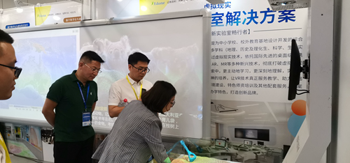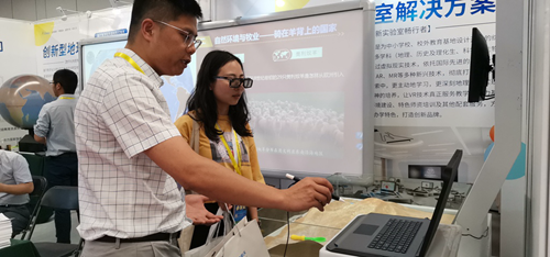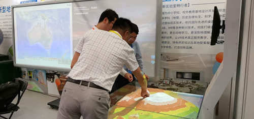 北京中教啟星科技股份有限公司借浙江省地理、VR、數(shù)學(xué)、歷史等教室裝備指導(dǎo)意見出臺的東風(fēng),參加了此次展會,并展示了指導(dǎo)意見中幾乎全部核心設(shè)備,其中包括已經(jīng)入編的中教啟星數(shù)字星球系統(tǒng)(多媒體球幕投影演示儀)、史地交互教學(xué)系統(tǒng)、地理AR沙盤、全息教學(xué)系統(tǒng)、VR教學(xué)系統(tǒng)、立體幾何模型等多種產(chǎn)品。