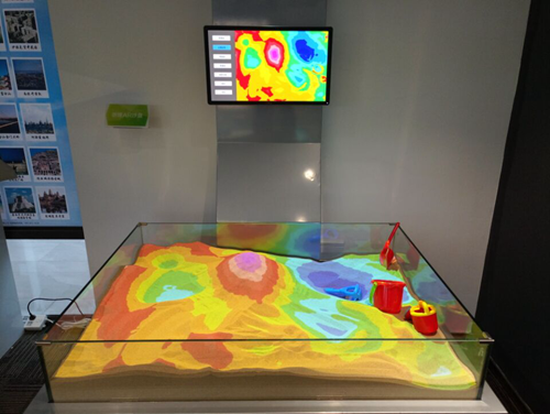 地理AR沙盤是一款適用于初高中地理教學的數(shù)字化投影沙盤。采用AR增強現(xiàn)實、傳感等技術(shù),即時識別互動沙盤形態(tài),依據(jù)沙盤變化,將不同的地勢地貌形態(tài)通過虛擬投影真實展示。