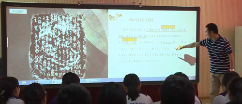 歷史交互教學(xué)系統(tǒng)通過超寬屏投影、集成多點觸控實現(xiàn)多種資料同時呈現(xiàn)的效果,具有震撼的視覺效果和強大的實時交互功能。該系統(tǒng)軟件為歷史教師提供了歷史工具、歷史專用板書以及畫筆軟件。