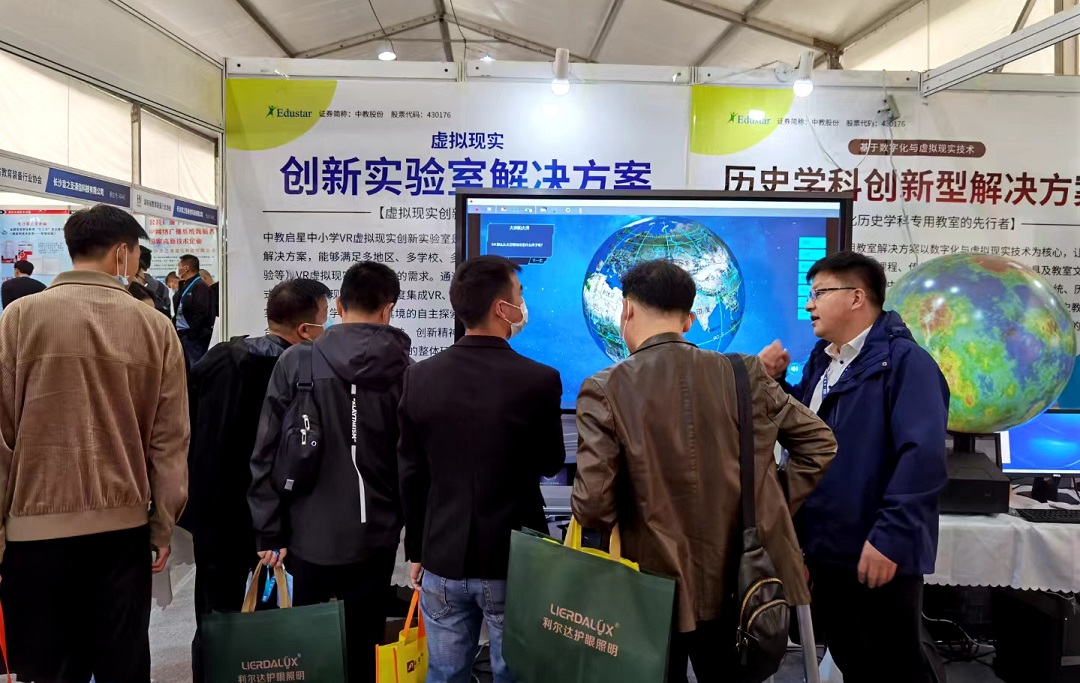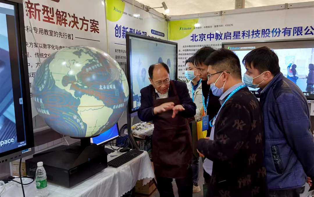 中教啟星攜地理專用教室、歷史專用教室、新建校等核心方案亮相本次展會,不光帶來使用最廣泛的數字星球等數字化教學專用設備,更有虛擬現實技術的史地學科教學資源軟件等先進信息技術教學設備,還有動手做類的地圖圖層學習板傳統文化體驗套裝、三維立體幾何拼裝展示模型、三維重力棋等綜合實踐類設備。雖然中教啟星本次展位較小,但在展會期間,前來參觀洽談的人絡繹不絕,現場人流涌動、熱鬧非凡。