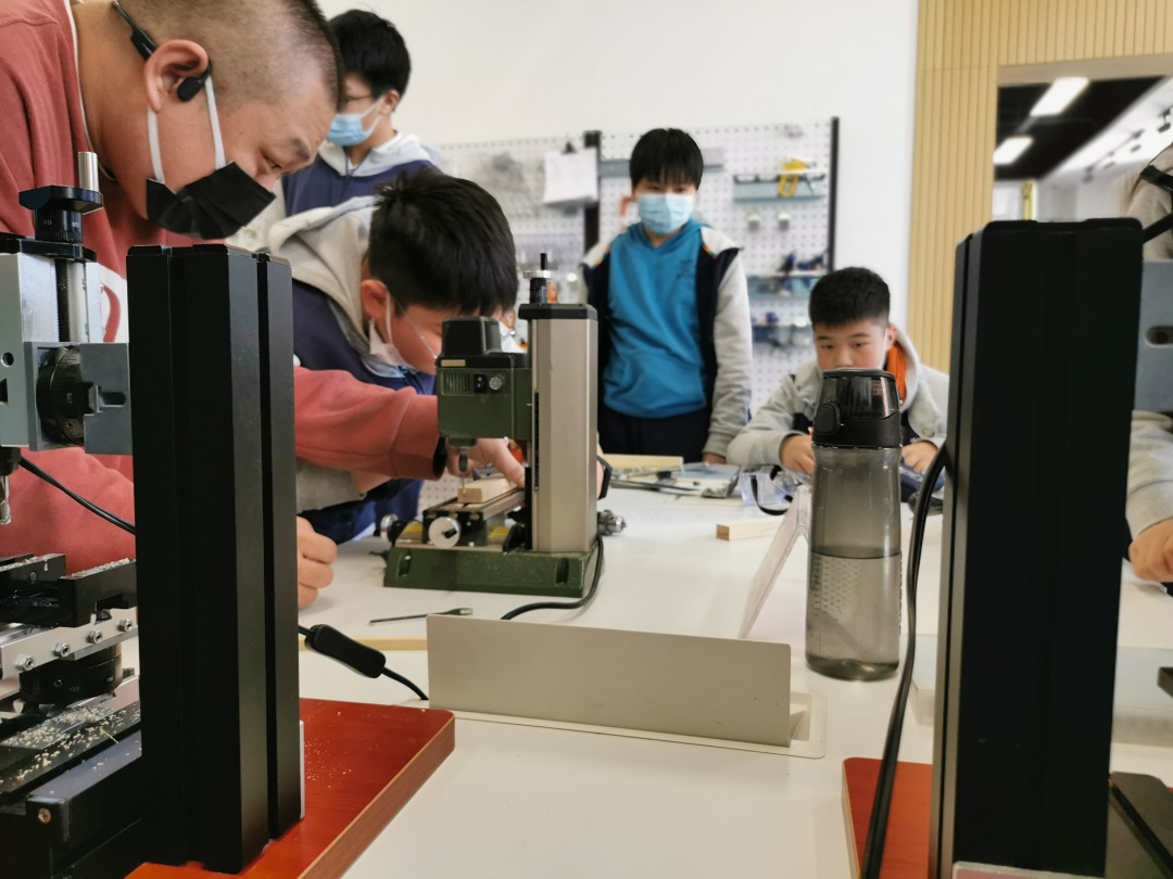 實(shí)際上,這節(jié)課程還包括前置課程,是讓初一的學(xué)生們親自動手通過機(jī)床和電腦軟件+3D打印兩種方式制作圭表。由于課程時長限制,這部分內(nèi)容在課例展示中只能以視頻的方式展示。
