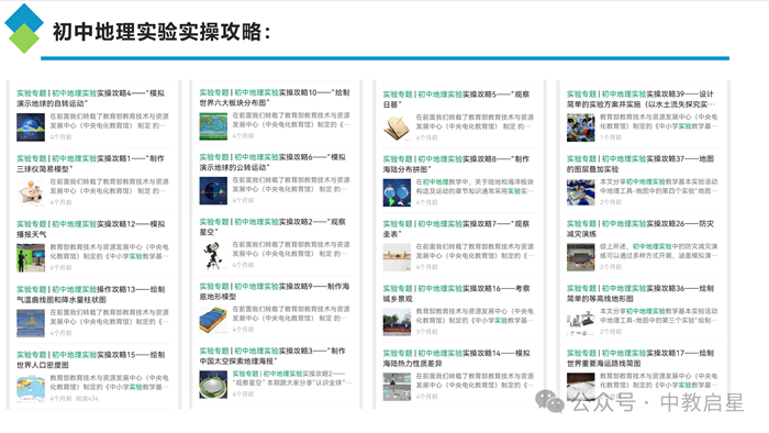 中教啟星結(jié)合在地理教育裝備領(lǐng)域多年的研發(fā)和教研經(jīng)驗(yàn),推出系列【實(shí)驗(yàn)專題】文章,按照教育部發(fā)布的地理實(shí)驗(yàn)教學(xué)目錄,逐一整理每一個(gè)實(shí)驗(yàn)實(shí)施時(shí)可以用到的工具裝備,實(shí)驗(yàn)方案、學(xué)校案例,并結(jié)合自己工作經(jīng)驗(yàn)進(jìn)行比較分析,便于老師們實(shí)操時(shí)參考和借鑒。初中完成21個(gè)實(shí)驗(yàn),高中完成24個(gè),全部是可實(shí)施、操作性較強(qiáng)的代表性實(shí)驗(yàn)。老師們點(diǎn)擊【實(shí)驗(yàn)專題】即可跳轉(zhuǎn)到該專題頁(yè)面,查看所有地理實(shí)驗(yàn)實(shí)操攻略文章。