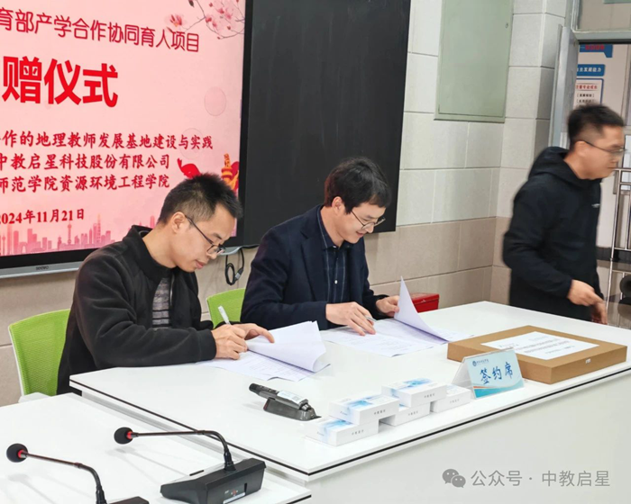 中教啟星也介紹了公司在全國地理師范生培養方面的工作思路和開展的活動,希望借助教育部搭建的產學合作協同育人平臺,助力綿陽師范學院資源環境工程學院地理師范生的培養。本次捐贈,正是發揮企業技術優勢,為學院提供師范生技能實訓所需的資源庫和虛擬實驗軟件,方便師生教學實踐。
