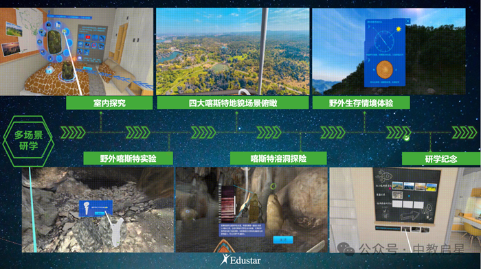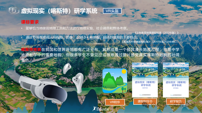 中教啟星地理VR研學(xué)教學(xué)系統(tǒng)(喀斯特地貌)通過(guò)虛擬現(xiàn)實(shí)技術(shù),模擬喀斯特地貌景觀及其形成,為學(xué)生提供沉浸式的地貌景觀學(xué)習(xí)情境。飛躍越不同空間,縱觀喀斯特地上和地下地貌景觀之中,對(duì)地貌欣賞同時(shí)進(jìn)行探究性學(xué)習(xí)。引導(dǎo)學(xué)生跨越漫長(zhǎng)地質(zhì)時(shí)期,分析其形成的地質(zhì)過(guò)程,有效地為提升學(xué)生地理實(shí)踐力和研究性學(xué)習(xí)解決了跨時(shí)空的地理性難題。