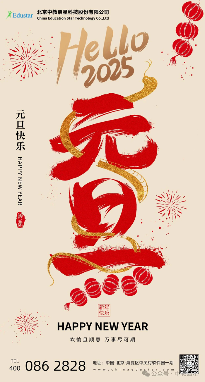 祥龍辭舊歲,靈蛇啟新年。值此2025年元旦佳節(jié),北京中教啟星科技股份有限公司向大家致以最誠摯的祝福和最衷心的感謝!