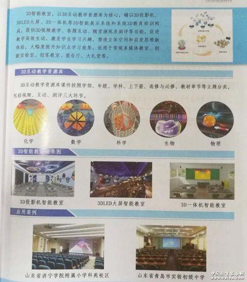 3D智能教室解決方案,以3D互動(dòng)教學(xué)資源庫(kù)為核心,輔以3D投影機(jī)、3DLED大屏、3D一體機(jī)等3D智能展示系統(tǒng)和系統(tǒng)3D教育培訓(xùn)構(gòu)成,提供3D視頻教學(xué)、答題互動(dòng)、隨堂演練及測(cè)評(píng)等功能,促進(jìn)教學(xué)高效生動(dòng),激發(fā)學(xué)生學(xué)習(xí)興趣,塑造立體空間和啟發(fā)思維新體驗(yàn),大幅度提升知識(shí)點(diǎn)學(xué)習(xí)效果。適用于常規(guī)多媒體教室、創(chuàng)新實(shí)驗(yàn)室、創(chuàng)客教室、報(bào)告廳、大禮堂等。
