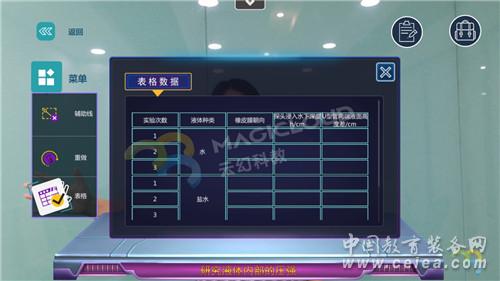 模型來增強學(xué)習(xí)體驗,提升了實驗的互動性、內(nèi)容的有趣性、視覺的創(chuàng)新性。學(xué)生與老師可以通過手勢識別操作虛擬的器材,課堂體驗從2D平面躍升至3D立體,同時每個實驗可以反復(fù)操作,操作數(shù)據(jù)可記錄多次,教師可以根據(jù)學(xué)生的操作數(shù)據(jù)進行對比、點評等,提高學(xué)生的學(xué)習(xí)興趣,活躍學(xué)生課堂參與程度。