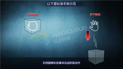 云幻科教AR教學資源主要是通過手勢操作虛擬的實驗器材的,基本手勢是手張開和握拳。教師最開始接觸的時候會因為手勢操作的不熟練、不規范出現一些不便,后續在半個小時到一個小時即可達到熟練的狀態,輕松操作任何內容。同時配置移動手臂支架,教師可以在講臺的任何位置進行教學演示。目前我們軟件也在支持鼠標及觸屏的操作,為教師提供多種操作模式,為教師教學提供更加便捷的教學工具。