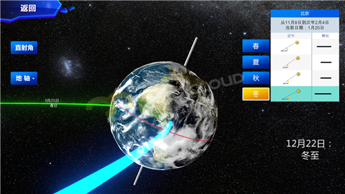如科學內容中的地球與宇宙,AR技術可以再現地球模型,教師可以通過其進行晝夜交替、四季變化等內容講解,通過放大縮小旋轉等操作,將內容各個角度展示給學生去觀察。有人可能會問了,那我用一個地球儀也可以的啊?一個地球儀是可以展示,但是如果讓全班的同學都參與觀看的話就有點困難了,同時一些現象是一個地球儀難以模擬展示的。AR技術可以通過大屏的展示、區域板塊的投放、現象模擬等讓知識點清晰直觀,學生對知識的理解更深刻,教師的講解也會輕松有效。
