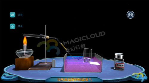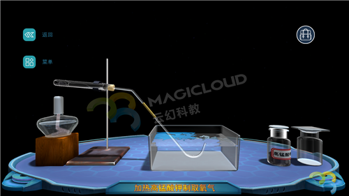 如化學高錳酸鉀制取氧氣實驗中,其注意事項就比較多,放置藥品的試管口是否存放棉花球、試管是否預熱、實驗結束時是否先移導管后移酒精燈等都會導致實驗的失敗。AR技術模擬真實實驗,在不同的情況下會有對應的實驗現象出現,如不塞棉花球會導致高錳酸鉀粉末隨氣體進入導管,使水槽中的水變成紫紅色;試管不預熱會導致試管炸裂;實驗結束時先熄滅酒精燈后移導管,伸入水槽一端的導管水倒吸,炸裂試管,等等。教師可以一一展示給學生,讓學生對這些知識點有一個深刻的印象,在其操作的時候就會避免這些現象的出現,同時避免了學校實驗器材的損壞及實驗器材開支。