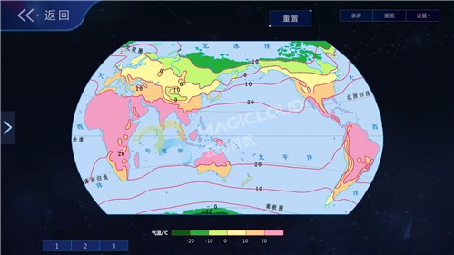 海陸變遷、天氣變化等動(dòng)態(tài)性的變化,這些概念的形成過程復(fù)雜,學(xué)生理解起來有一定的困難,虛擬仿真技術(shù)虛擬再現(xiàn)各種地理環(huán)境,模擬真實(shí)演變過程,讓過程的發(fā)生呈現(xiàn)在眼前,提高地理教學(xué)的趣味性。如海陸的變遷,模擬大陸的漂移,形象化展示變遷的過程;氣溫的變化與分布、降水的變化與分布等,將全球不同時(shí)期的氣溫分布、雨量分布等以圖像的形式表現(xiàn)出來,從而對(duì)它們進(jìn)行學(xué)習(xí)和探究。