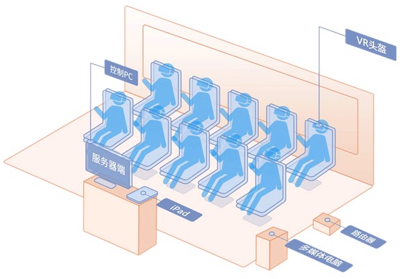 VR設備的使用與連接相對簡單。首先,用戶需要將VR頭顯與計算機連接,然后啟動VR軟件或應用。在啟動過程中,軟件會引導用戶進行頭顯的校準和手柄的配對。一旦連接成功,用戶就可以佩戴頭顯并進入虛擬世界進行體驗了,利用集控軟件可以實現教師統一管理。