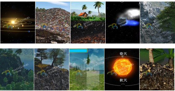 地球科學:虛擬再現地球科學的含義,地球的宇宙環境、地球的外部與內部圈層特征、地質年代的基本知識,地球上各種地質作用的基本原理和過程,地球的資源與環境問題、地球形成、演化的基本概念和認識;地球板塊變遷,感知滄海桑田的歷史痕跡,太空宇宙等奧秘。