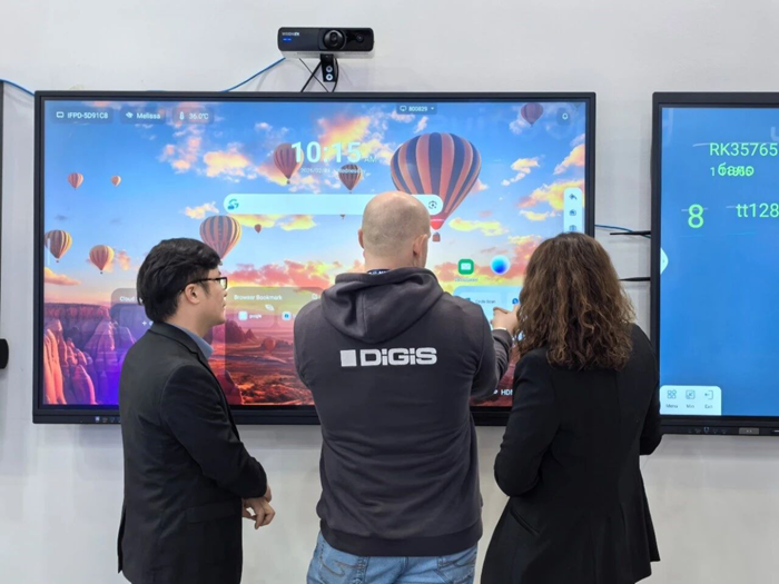 本次展會展示了全方案多尺寸的文香AI智能交互一體機,集成了4K超高清顯示、多點觸控、AI語音助手與邊緣計算模塊,成為教室與會議空間的“智慧大腦”。支持AI手勢識別與筆跡預測,書寫流暢無延遲;與錄播系統無縫聯動,實現“一鍵開啟錄課+智能導播+課后AI生成摘要”的全流程自動化。