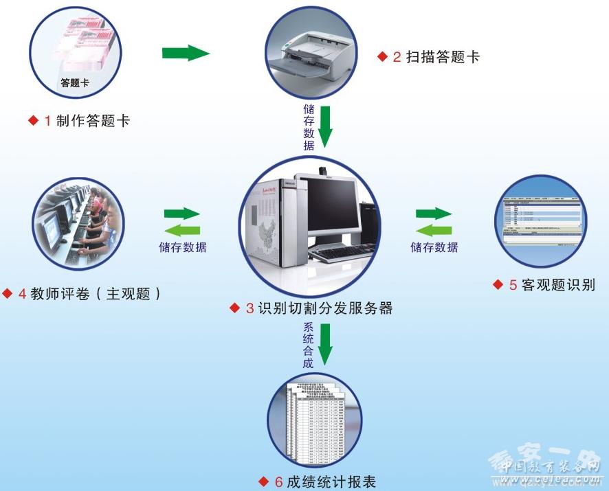 產(chǎn)品詳細(xì)介紹網(wǎng)上閱卷又稱網(wǎng)絡(luò)閱卷、計(jì)算機(jī)閱卷或無(wú)紙化閱卷。它是基于計(jì)算機(jī)網(wǎng)絡(luò)環(huán)境,運(yùn)用圖片掃描、模式識(shí)別、圖像處理等技術(shù)對(duì)考試答題卡進(jìn)行電子化處理的過(guò)程。此閱卷方式將客觀題與主觀題都在一張答題卡上作答,通過(guò)高速文檔掃描儀掃描存儲(chǔ)到計(jì)算機(jī)內(nèi),得到清晰準(zhǔn)確的圖像文件后,客觀題由計(jì)算機(jī)自動(dòng)閱卷,主觀題無(wú)需再翻卷批閱,而是由老師通過(guò)計(jì)算機(jī)進(jìn)行閱卷,閱卷完畢后由計(jì)算機(jī)自動(dòng)匯總分?jǐn)?shù),并可隨機(jī)生成幾十種成績(jī)分析統(tǒng)計(jì)報(bào)表。網(wǎng)上閱卷方式公平公正、方便快捷,大大提高工作效率,降低教師的工作強(qiáng)度,對(duì)減少和有效控制評(píng)卷誤差、監(jiān)控評(píng)卷質(zhì)量起到了積極作用,使考試管理工作實(shí)現(xiàn)了真正意義上的全面信息化、自動(dòng)化、網(wǎng)絡(luò)化。