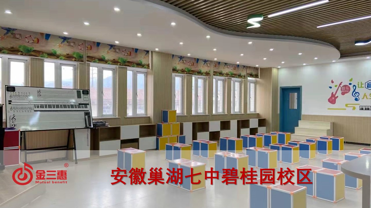 金三惠依據客戶需求提供國標音樂教室,配備了金三惠數字音樂教學系統、整套奧爾夫樂器等、舞蹈教室配套器材等教學教具。
