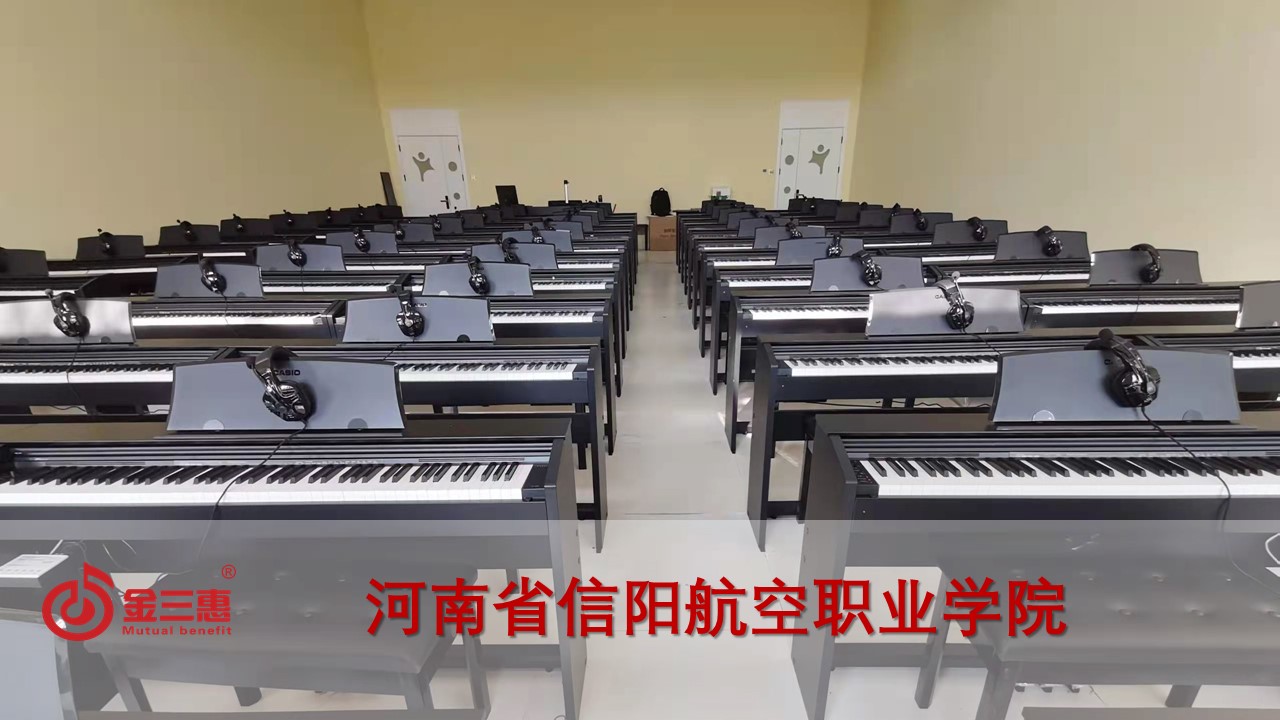 河南省信陽航空職業(yè)學(xué)院的數(shù)字音樂電鋼琴教室開始使用,由北京金三惠科技有限公司負責(zé)提供、安裝、培訓(xùn)。