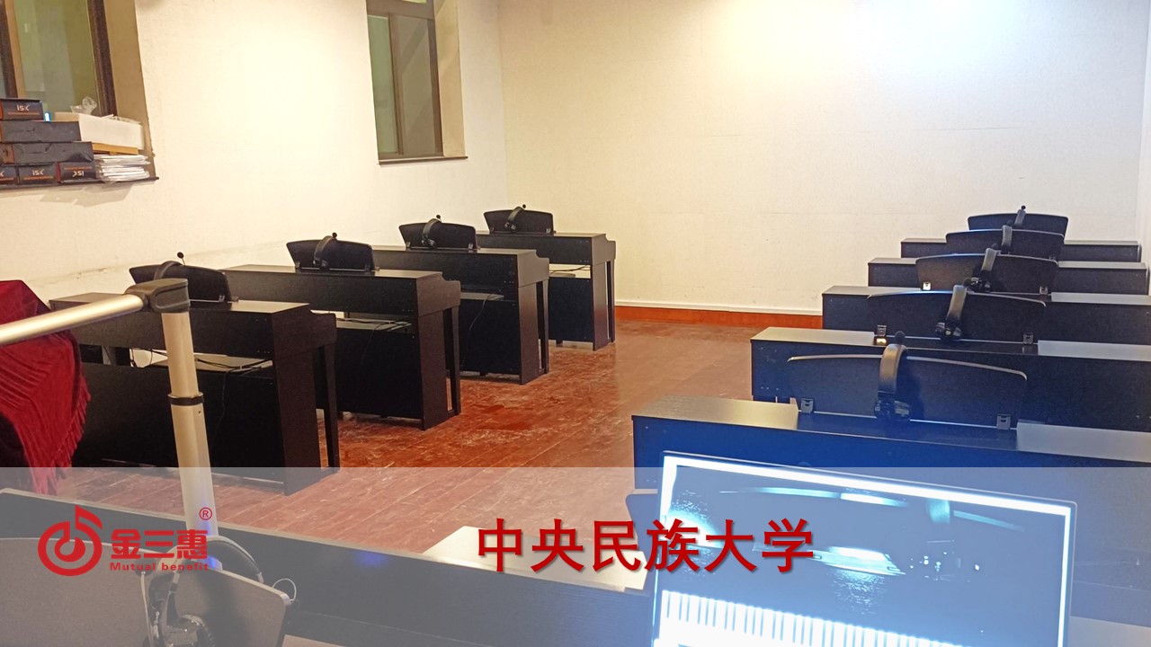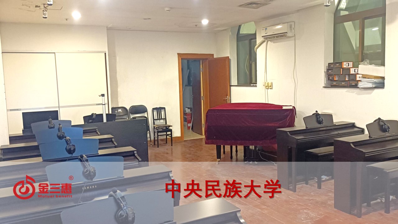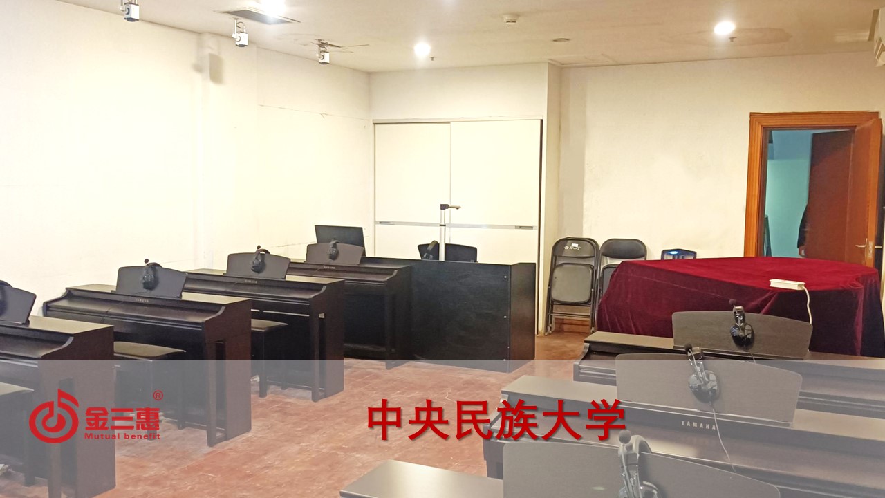 中央民族大的數字音樂電鋼琴教室開始使用,由北京金三惠科技有限公司負責提供、安裝、培訓。