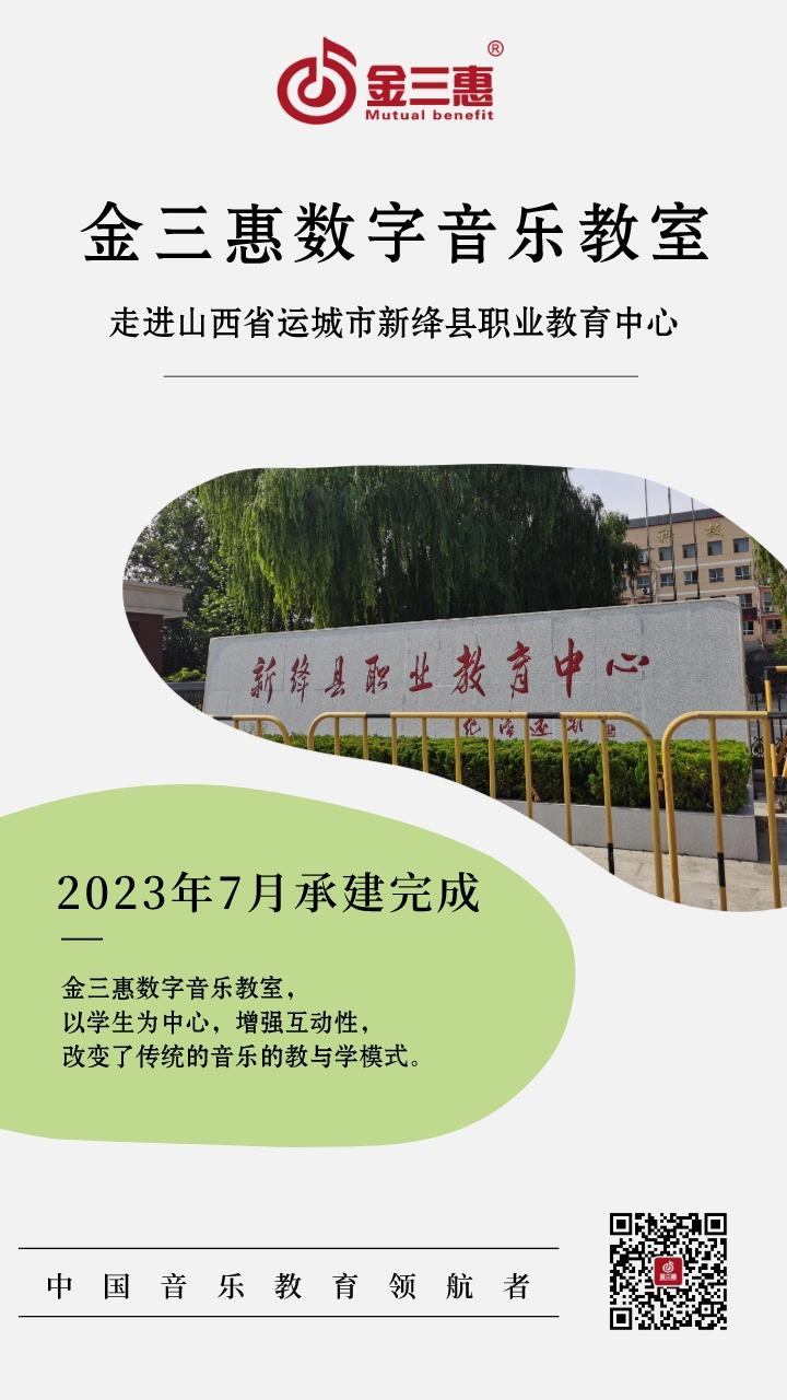 2023年7月,金三惠依據客戶需求,為山西省運城市新絳縣職業教育中心(以下簡稱:新絳縣職業教育中心)提供安裝的舞蹈教室正式開始使用!教室內配備了金三惠數字音樂教學系統、配套器材和教學教具。