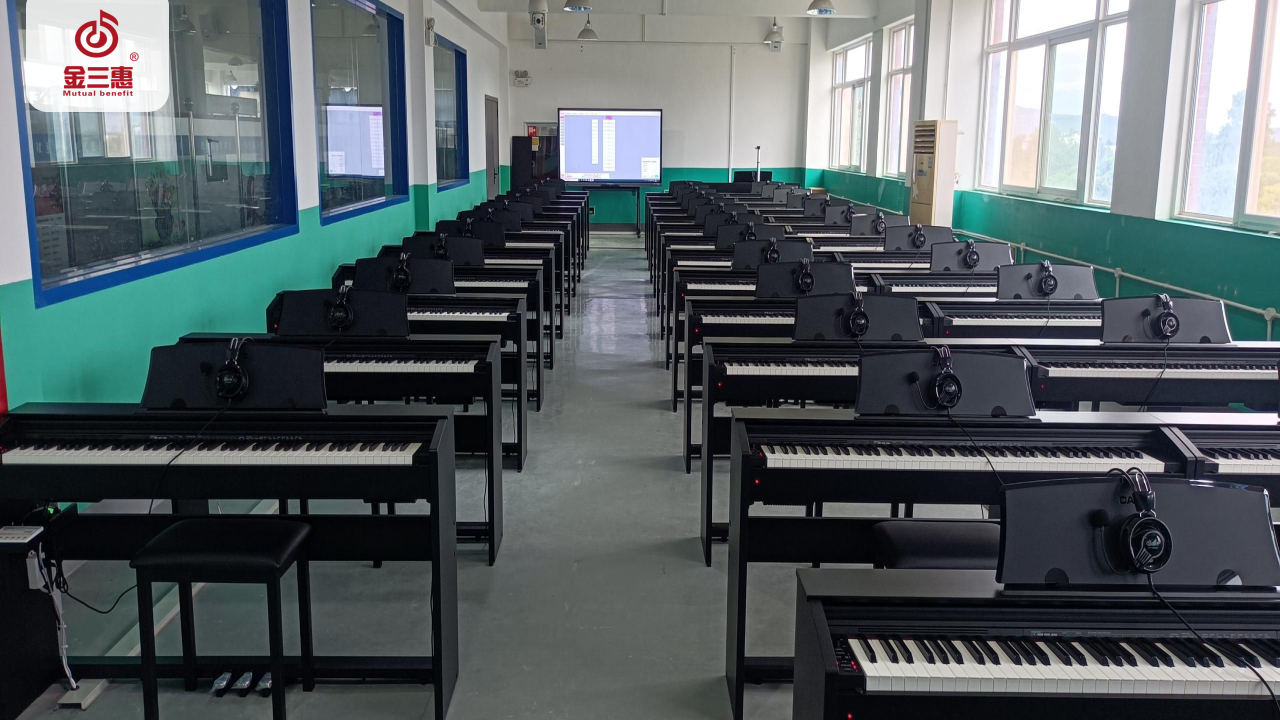 2023年8月,金三惠數字音樂教室走進陜西省漢中市航空技師學院,為學生提供了40+1的電鋼琴教室,配備了金三惠電鋼琴教學系統、電鋼琴、數字音樂教學儀等教學教具等。