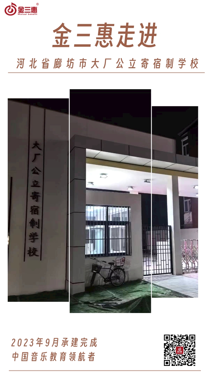 2023年9月,金三惠數(shù)字音樂教室走進(jìn)河北省廊坊市大廠公立寄宿制學(xué)校,為學(xué)生提供了45+1的電鋼琴教室,配備了金三惠電鋼琴教學(xué)系統(tǒng)、電鋼琴、數(shù)字音樂教學(xué)儀等教學(xué)教具等。電鋼琴室-金三惠 (jinsanhui.com)