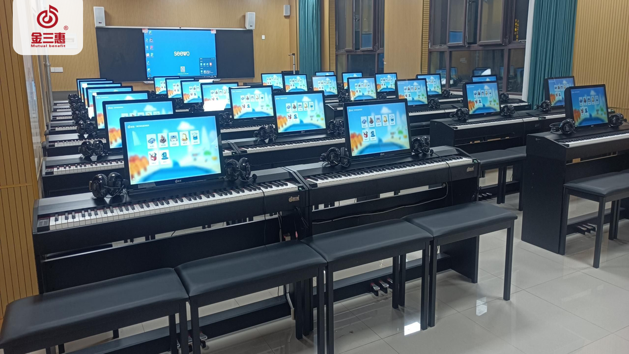 金三惠提供一站式「新常態音樂教室解決方案」「數字音樂教育綜合解決方案」,熱銷產品有:數字音樂教學軟件、美育測評訓練平臺、電鋼琴/電子琴教學管理軟件、電鋼琴教室、智慧音樂素養教室、數字電教板、各大類音樂器材、音樂教學設備等。為區域音樂教育提供管、教、學、評、練綜合平臺,打造智慧平臺+智能硬件+數字資源+智能管控+教學評價為一體的全場景學習生態,實現區域數字化音樂教育轉型。