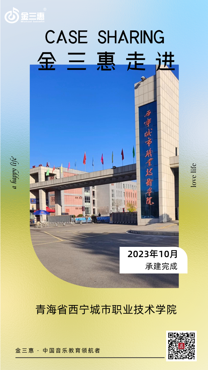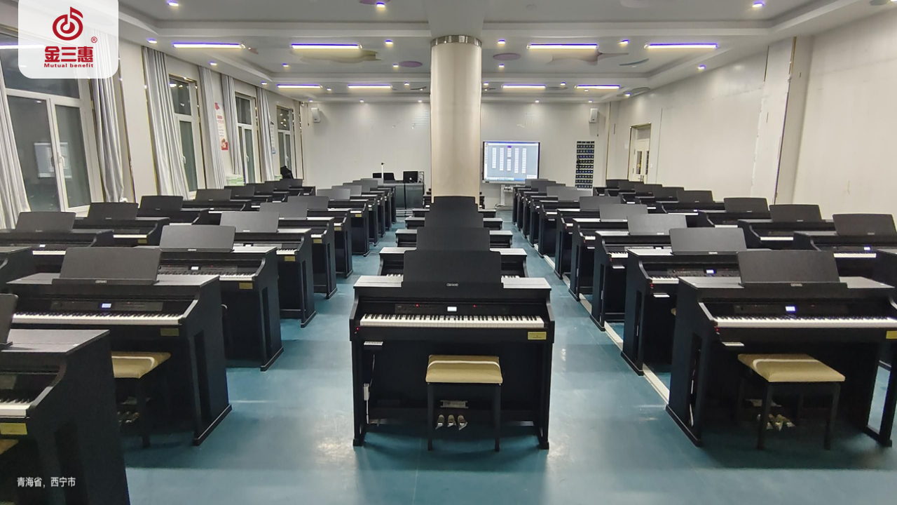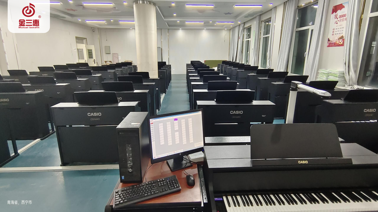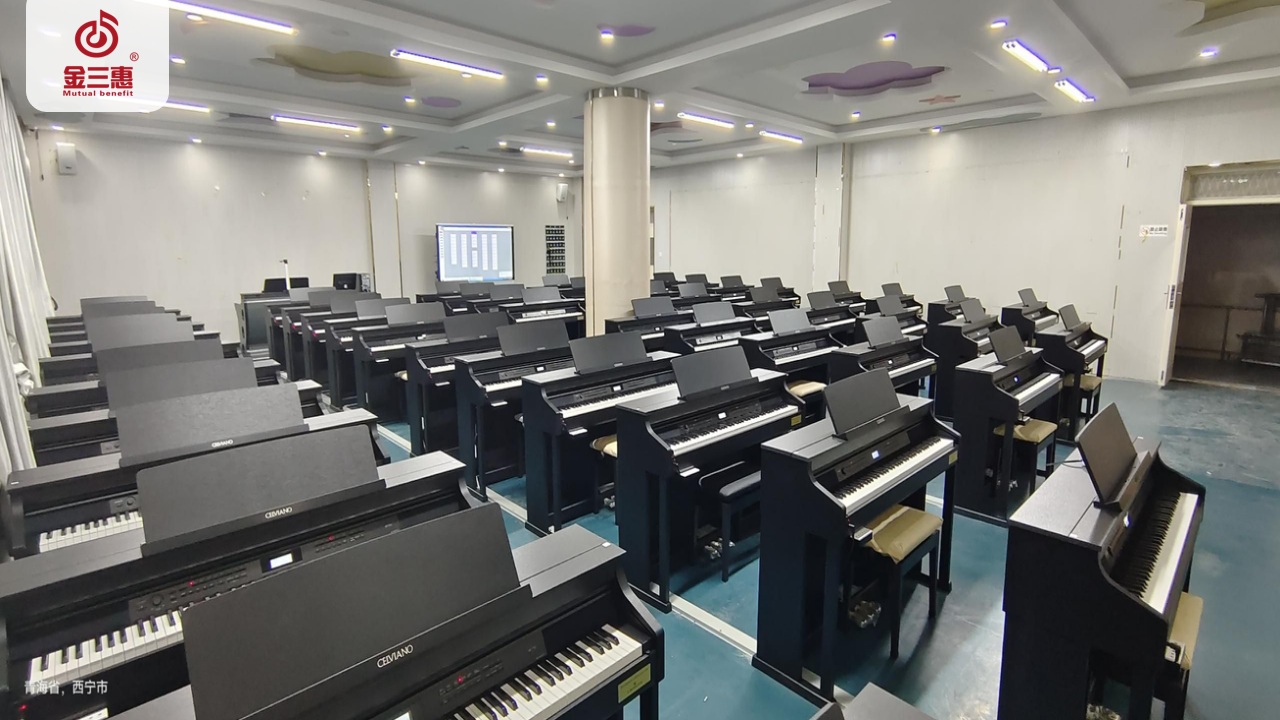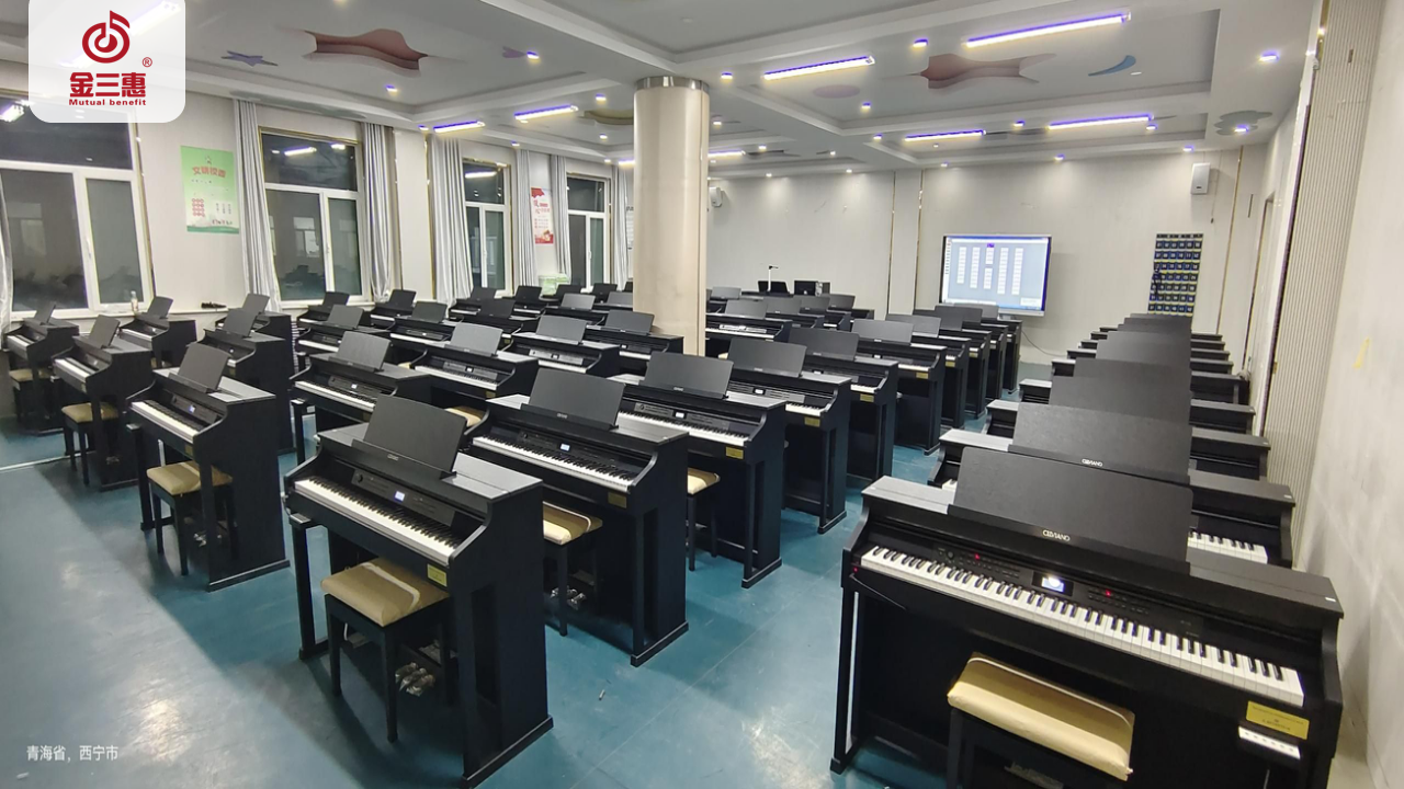 2023年10月,金三惠數字音樂教室走進青海省西寧城市職業技術學院,為學生提供了50+1的電鋼琴教室配備了金三惠電鋼琴教學系統、電鋼琴、數字音樂教學儀等教學教具等。