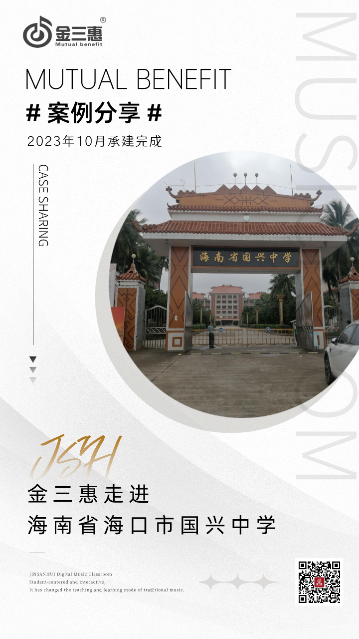 2023年10月,金三惠數字音樂教室走進海南省海口市國興中學,為學生提供了50+1的電鋼琴教室配備了金三惠電鋼琴教學系統、電鋼琴、數字音樂教學儀等教學教具等。電鋼琴室-金三惠 (jinsanhui.com)
