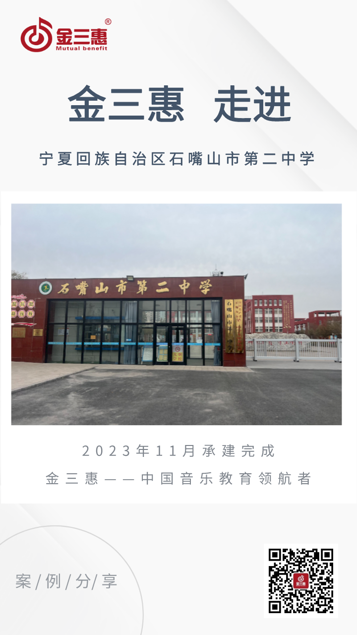 2023年11月,金三惠數(shù)字音樂教室走進寧夏回族自治區(qū)石嘴山市第二中學,為學校提供了24+1的電鋼琴教室配備了金三惠電鋼琴教學系統(tǒng)、電鋼琴、數(shù)字音樂教學儀等教學教具等。電鋼琴室-金三惠 (jinsanhui.com)