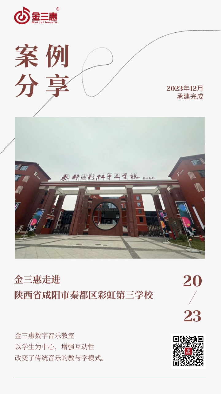 2023年12月,金三惠數(shù)字音樂教室走進陜西省咸陽市秦都區(qū)彩虹第三學(xué)校,為學(xué)校提供了4間數(shù)字音樂教室,3間舞蹈,1間器樂排練廳,1間鼓號隊。新常態(tài)教室-金三惠 (jinsanhui.com)