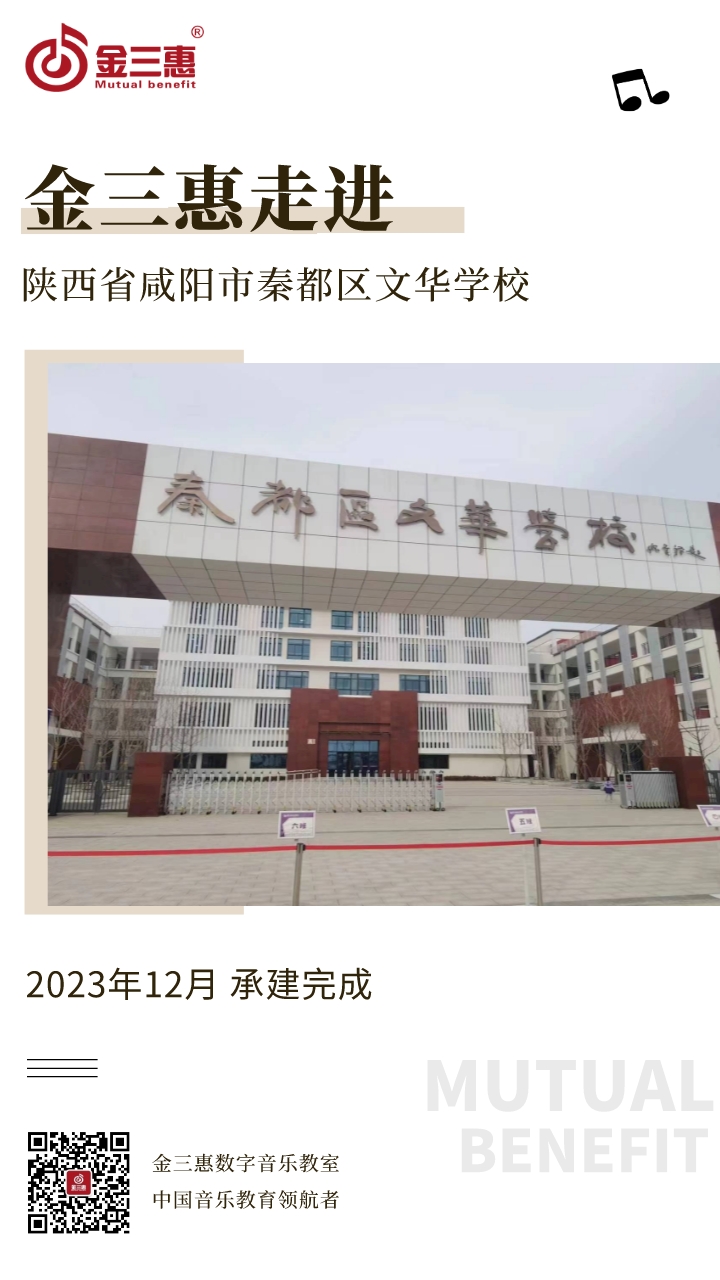 2023年12月,金三惠數字音樂教室走進陜西省咸陽市秦都區(qū)文華學校,為學校提供了4間數字音樂教室,2間電聲樂隊,2間舞蹈教室,1間鼓號隊。新常態(tài)教室-金三惠 (jinsanhui.com)